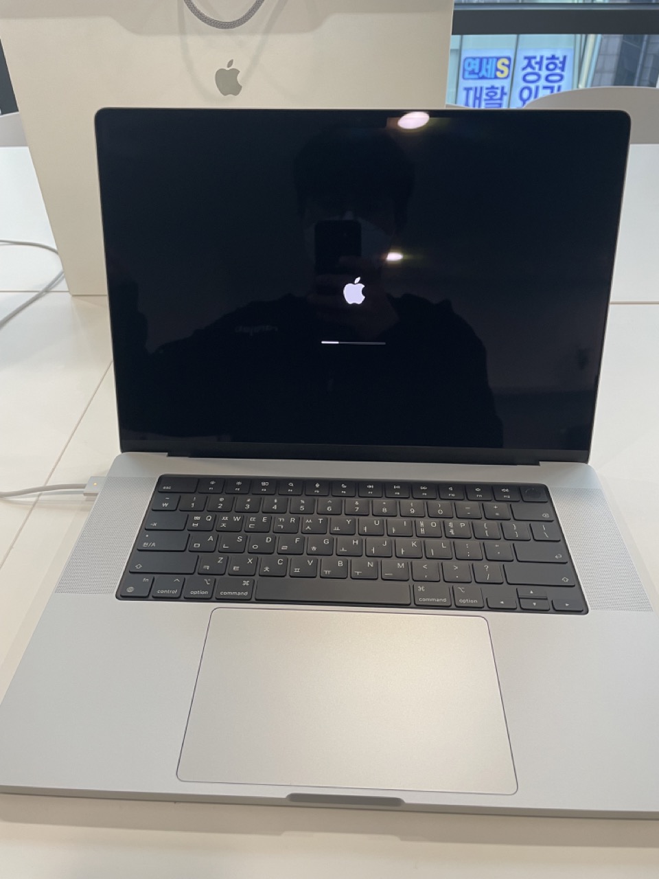 처음 맥북을 받았을 때 빠르게 뜯어보고 싶었지만 업무 중이어서 unboxing은 업무가 종료되고나서 진행했습니다 ㅜㅜ