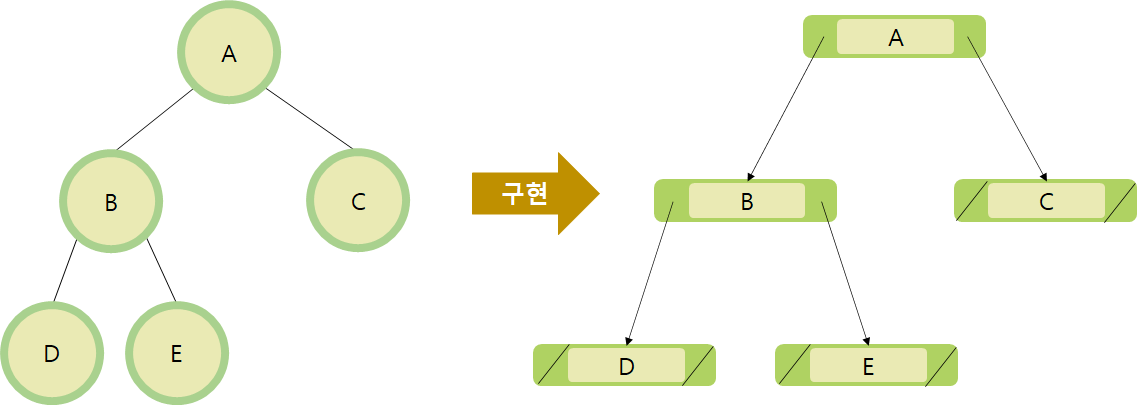 이진 트리를 구현하는 방법은 두 가지가 있다.