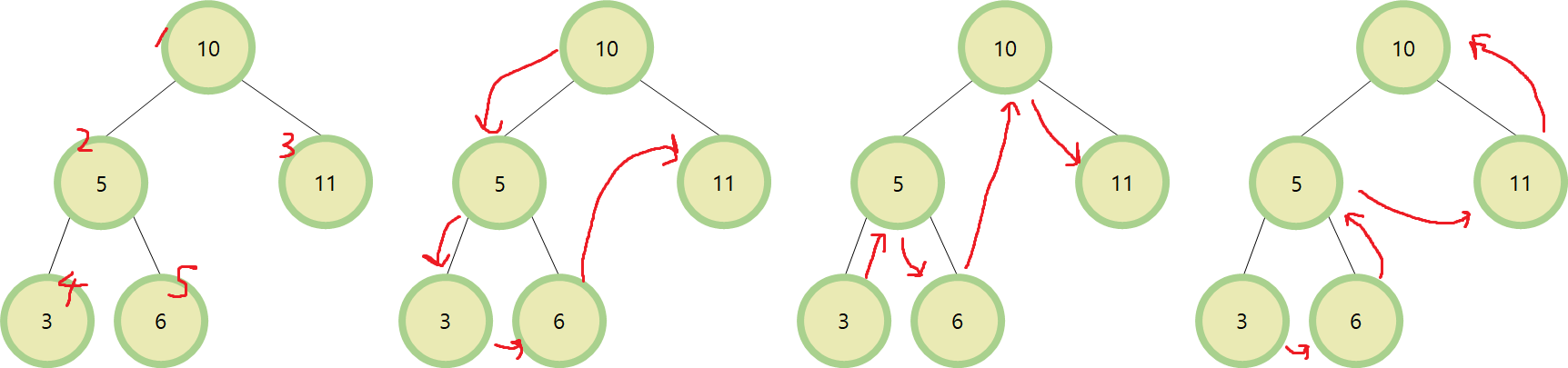 4. 휘위 순회 : 3, 6, 5, 11, 10