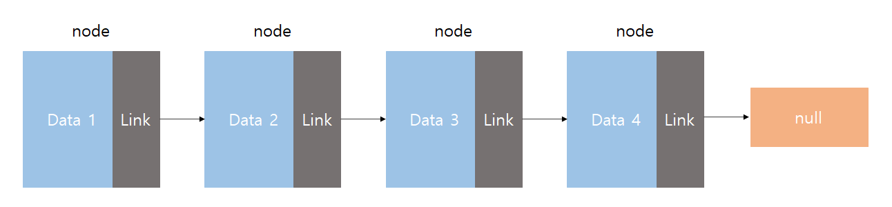 node는 Data와 다음 Data가 무엇인지 저장되어 있는 Link정보를 가지고 있는 구조체이다.