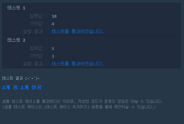 두 코드 모두 테스트 1, 2를 통과하였다.