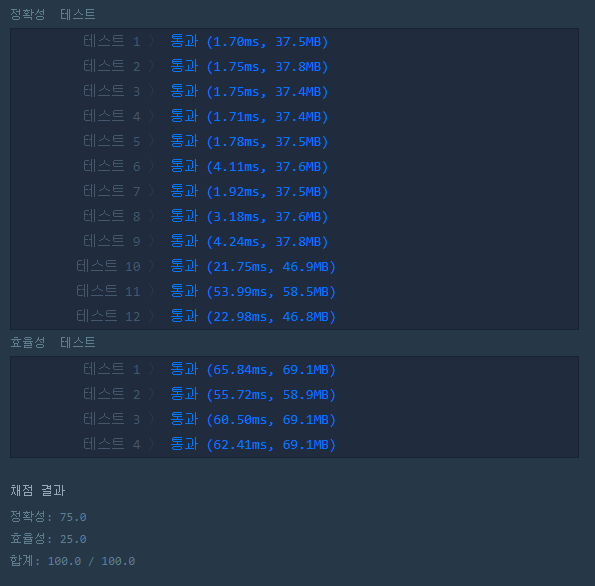 두번째 코드 정확성, 효율성 테스트 통과