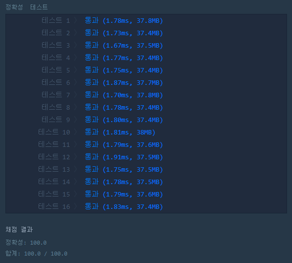 위 코드는 어떤 것이든 아무런 문제 없이 결과가 받아지는데 이상하게 코드 채점에서는 실패한다... 이유를 아직도 찾지 못했다.