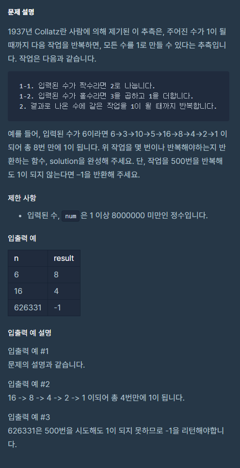 콜라츠 추측 문제는 콜라츠가 만든 반복 작업을 어떻게 계속 돌릴 것인지 고민해봐야하는 문제였다.