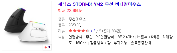 그래서 인체공학 마우스를 많이 알아보다가 로지텍의 MX VERTICAL은 너무 비싼 듯하여 제닉스의 STORMX VM2를 구매하게 되었습니다.